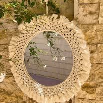 مرايه مكرميه هاند ميد بتصميم انيق يناسب الديكور البوهيمي و المودرن  وخيوط قطن طبيعيه